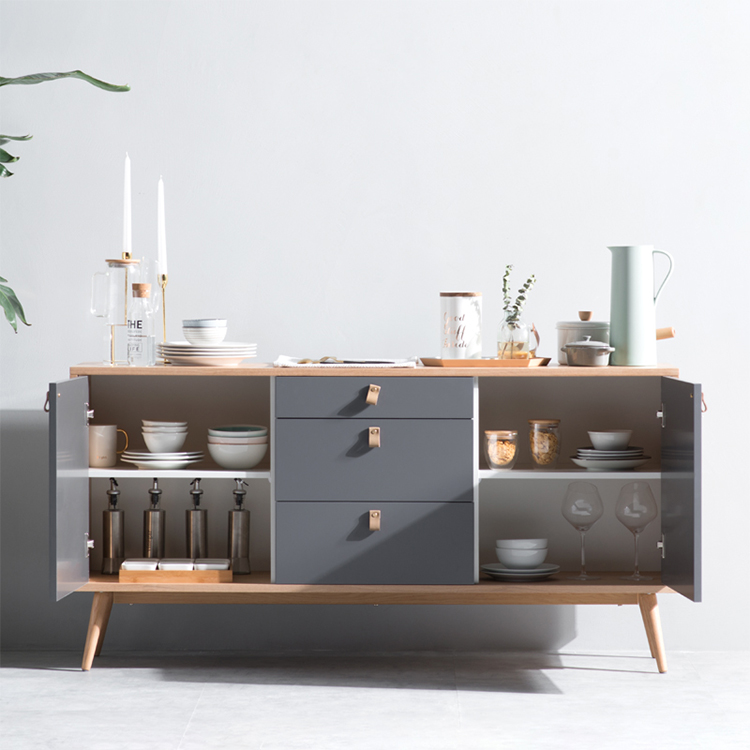 Compuesto por puertas con estantes interiores y cajones de distintos tamaños, el aparador está pensado para albergar platos, vasos, manteles y cubertería, tanto.